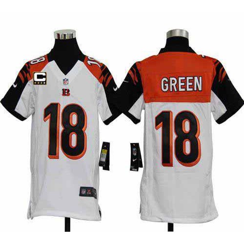 Nike Cincinnati Bengals #18 A.J. Green White With C Patch Youth Stitched NFL Elite Jersey
