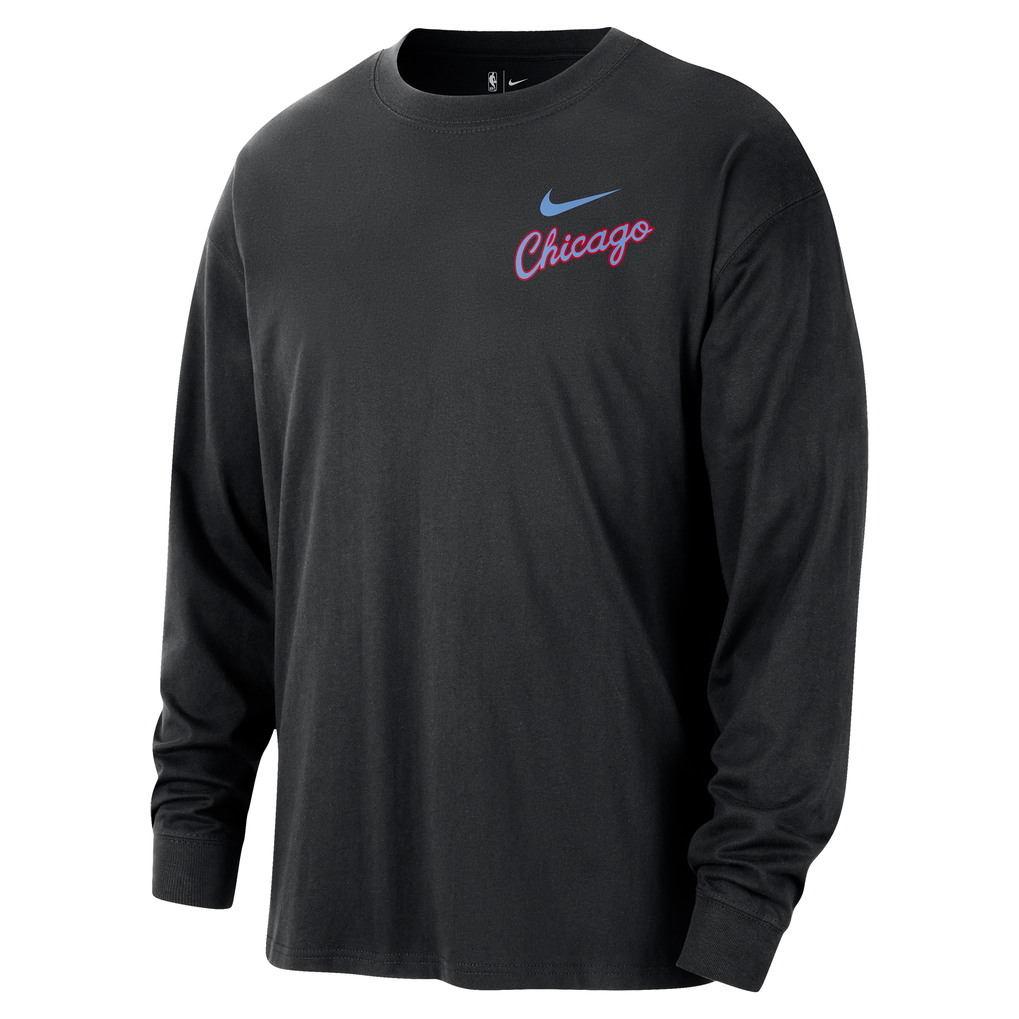 It's time to ignite your passion for the Chicago Bulls with this 2025/26 City Edition Remix Essential Logo Long Sleeve T-Shirt from Nike. Crafted from a soft, all-cotton fabric, this top delivers supreme comfort whether you're at the game or hanging out with friends. Bold team graphics signal your unwavering devotion to the Chicago Bulls, and the long-sleeve design provides that extra bit of warmth when you need it. Add this stylish piece to your collection and let your fandom shine.