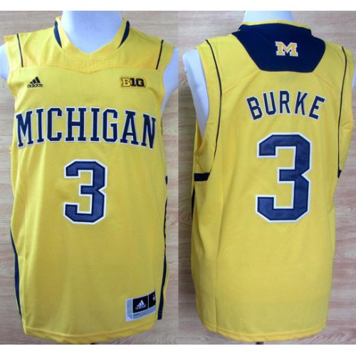Michigan Wolverines 3 Trey Burke Big 10 Patch Yellow NCAA Basketball Jerseys