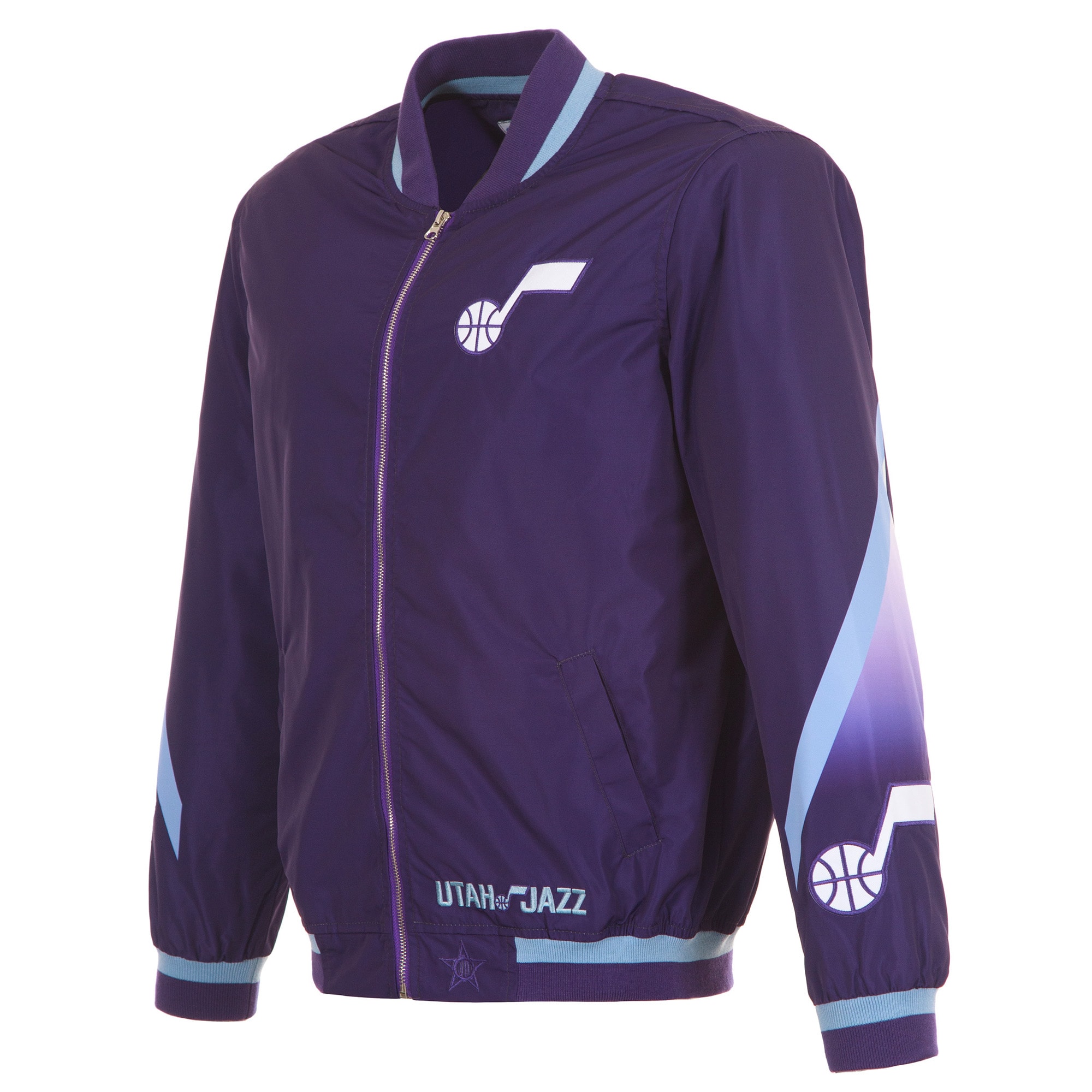 Celebrate the Utah Jazz' new City Edition look with this Utah Jazz 2024/25 City Edition Full-Zip Nylon Bomber Jacket. This stylish bomber jacket is perfect for milder days when you need a light layer to show off your Timberwolves pride. With a full-zip front and ribbed collar, cuffs, and hem, this jacket will keep you comfortable while you represent your favorite team.