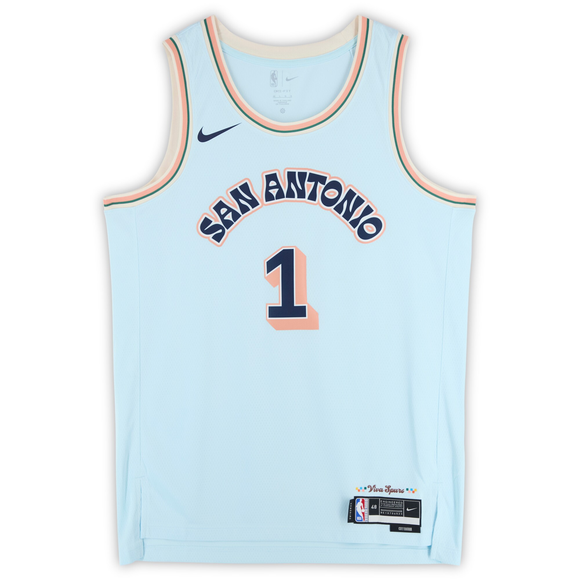 Add a new centerpiece to your collection of San Antonio Spurs memorabilia with this Victor Wembanyama autographed Light Blue Nike 2024-25 City Edition Swingman Jersey. It features eye-catching team details and a distinct signature from the superstar center. Additionally, this collectible includes an individually numbered, tamper-evident hologram that can be verified online to certify authenticity.